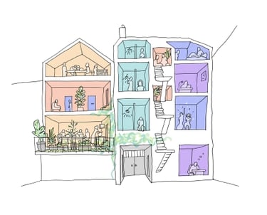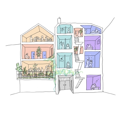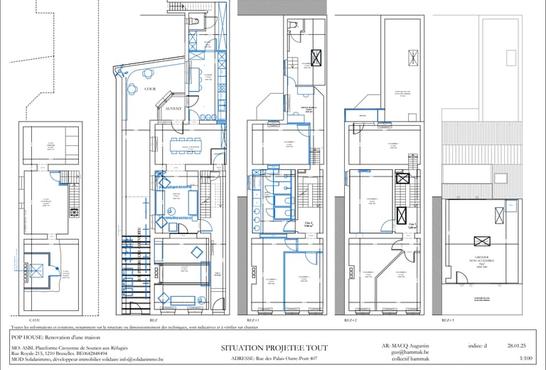 Création d’une maison d’accueil pour femmes vulnérables à Bruxelles. Le projet consiste en la rénovation et la transformation de deux maisons unifamiliales contiguës en un lieu composé de 8 chambres individuelles confortables, d’une grande cuisine, de larges espaces de rencontre et des locaux de l’association qui assurera l’encadrement des résidentes.