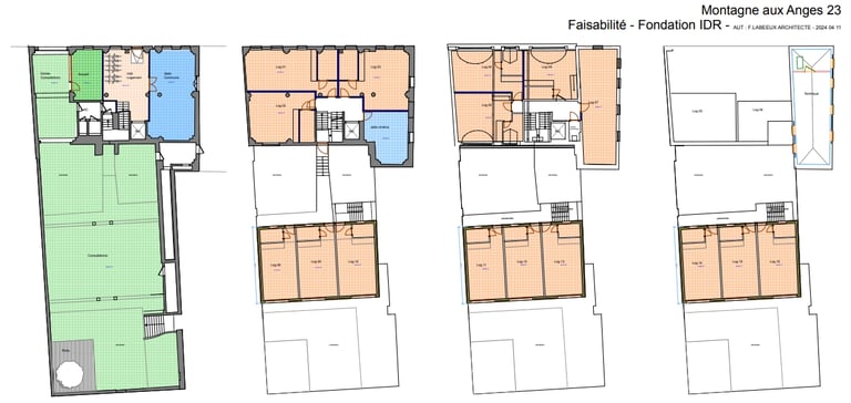 Le projet consiste en la rénovation et la transformation d’un immeuble de bureaux de 800 m² en un centre de santé mentale pour enfants et adolescents et des hébergements sociaux. Le lieu accueillera des cabinets de consultation individuelle et collective ainsi que les bureaux de l’ensemble des travailleurs du centre.