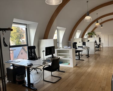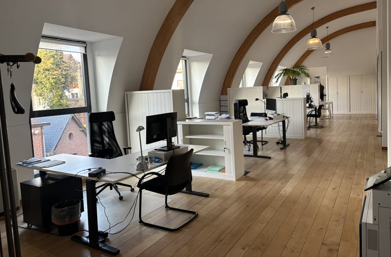 Implanté en intérieur d’îlot et situé au troisième étage avec ascenseur, cet espace de bureaux d’environ 270 m² offre un cadre de travail lumineux, calme et agréable. Les volumes ouverts, l’architecture en arcs et l’apport généreux de lumière naturelle participent à une atmosphère de travail qualitative et apaisante, propice à la concentration, à l’accueil et au travail d’équipe.
